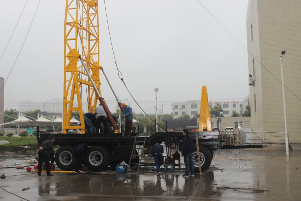2018年9月25日到26日,核工業(yè)208大隊(duì)鉆探公司經(jīng)理褚忠鐸和安防處干事谷峰來(lái)我公司驗(yàn)收5臺(tái)HXY-800QT拖車鉆機(jī),并對(duì)塔體強(qiáng)度進(jìn)行拉力實(shí)驗(yàn)測(cè)試。首先根據(jù)雙方簽訂的技術(shù)協(xié)議,對(duì)5臺(tái)HXY-...