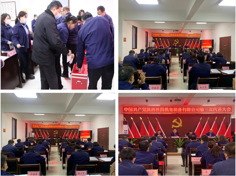 12月9日,中國共產(chǎn)黨陜西核昌機電裝備有限公司第三次代表大會隆重召開,公司六個黨支部的三十名黨員代表參加會議。集團公司機關黨委委員、黨委副書記、黨委工作部副部長、團委書記治蕾到會指導。