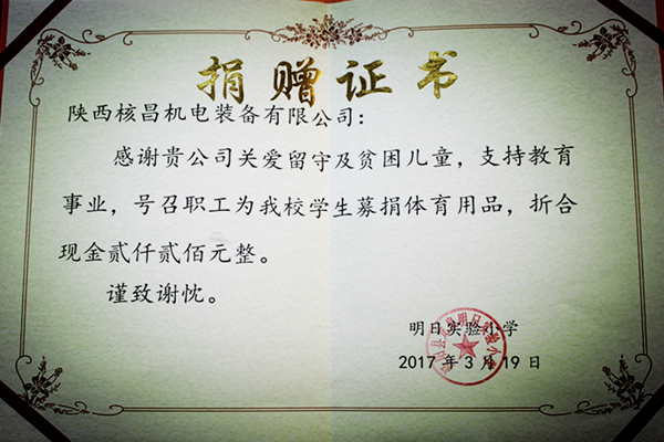“傾心公益,傳遞愛心”,多年來,核昌公司干部職工一直熱心于公益事業(yè),主動發(fā)揚(yáng)雷鋒精神。此次,核昌公司團(tuán)委通過組織職工為留守兒童募捐,希望在校學(xué)生提高鍛煉身體的意識,幫助他們健康成長。受捐學(xué)校舉行了捐贈儀式,表達(dá)了對核昌公司職工的感激之情,并為公司贈予了榮譽(yù)證書。
