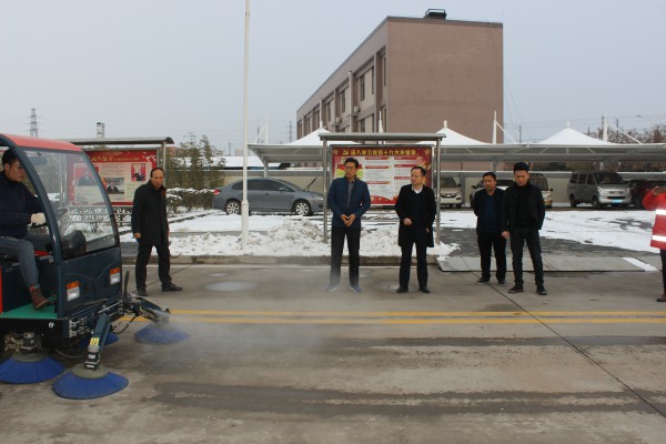 首先朱經理一行對生產裝置現場進行了參觀,詳細了解了生產工藝流程,并實地觀看了各類清掃機的清掃功能和效果。之后雙方進行了座談,座談中朱經理對公司提出了一些建設性的建議,并對新能源清掃機的清掃功能表示認可,表示下一步將在桑德環保集團進行推廣使用。